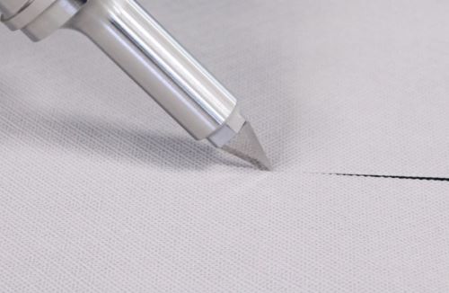 Questa tecnologia a bassissimo consumo energetico utilizza delle vibrazioni e, diversamente da un sistema a caldo, non ha bisogno di tempi di riscaldamento e pulizia della lama di taglio, ottenendo così bordi perfettamente puliti, uniformi e senza bruciature.